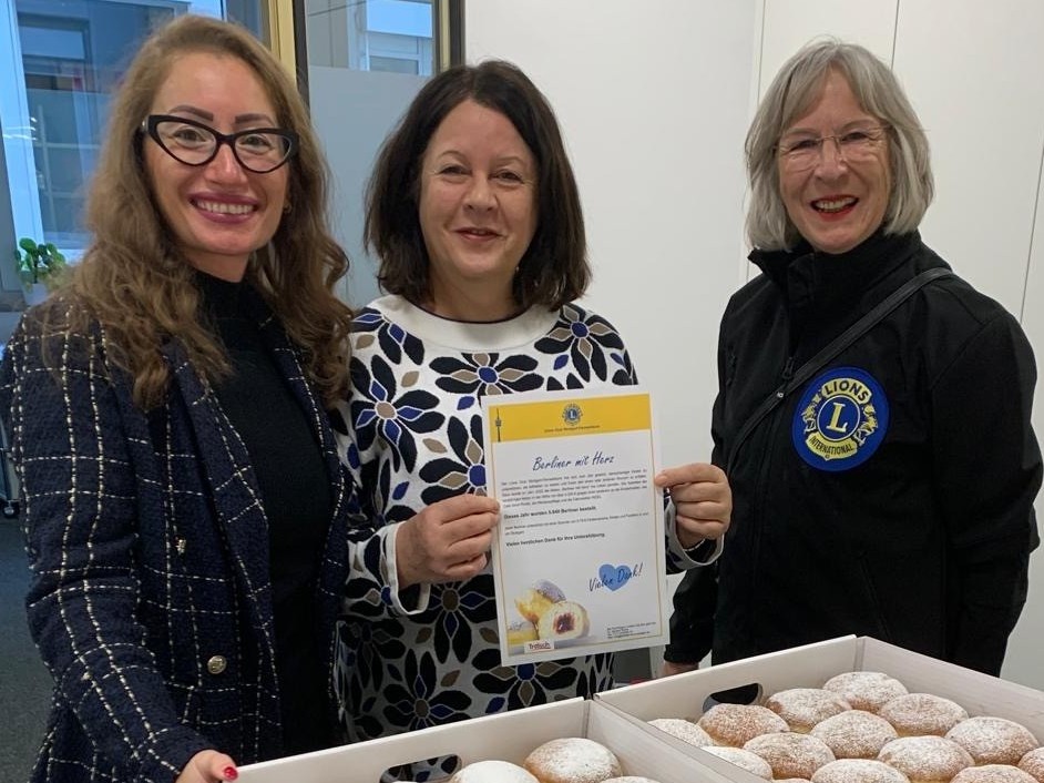 Der Start der närrischen 5. Jahreszeit am 11.11.2025 wurde mit einer Nascherei versüßt. Mit der Aktion „Berliner mit Herz“ des Lions Club Stuttgart Fernsehturm werden benachteiligte Kinder und Jugendliche im Raum Stuttgart unterstützt. 5.640 vorbestellte Berliner, so viele wie nie zuvor, wurden von den Clubmitgliedern vor 11:11 Uhr im Großraum Stuttgart an Büros, Firmen und Einrichtungen ausgefahren. „Der beste Nebenjob der Welt, so ein Lionsfreund, überall wo ich ankomme, erwarten mich strahlende Gesichter! Gleichzeitig werden wir für die großartige Aktion gelobt. Genau für solche Momente bin ich Lions geworden. Seit 2022 führt der LC Stuttgart Fernsehturm diese Activity erfolgreich durch und hat seitdem über 21.360 Berliner verkauft und damit ein Spendenvolumen von über 17.000.- EUR erwirtschaftet. Danke an die Clubmitglieder und an die Bäckerei Trölsch.